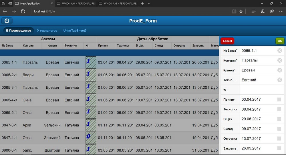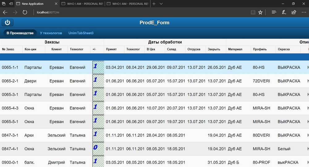 Данная программа отображает процесс на производстве, контролировать и редактировать данные. А также с помощью сканера на гаджетах получить информацию.